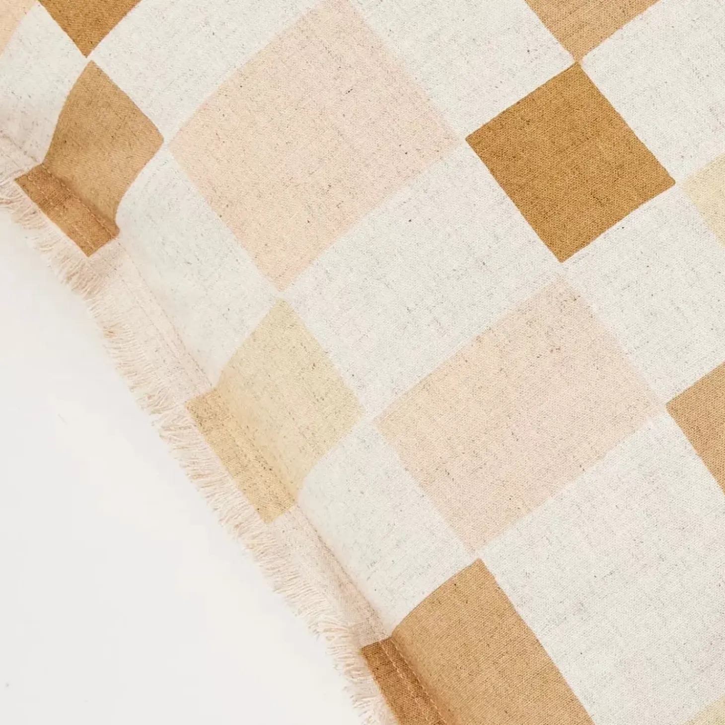 Add Style To Bedroom Or Living Soft Furnishings With This Geometric Patterned Soft Cotton Throw Cushion In Warm, Neutral Shades Of Cream, Beige And Brown.