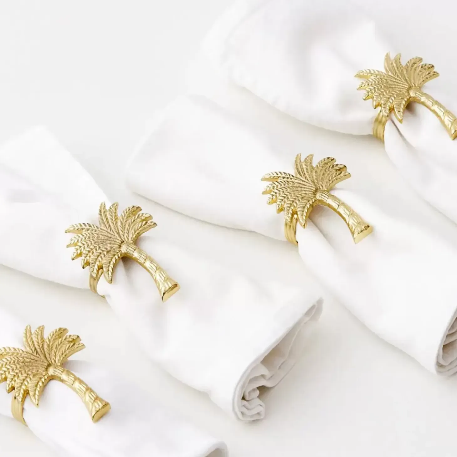 Celebrate Summer Dining With Fun, Golden Palm-Shaped Napkin Rings