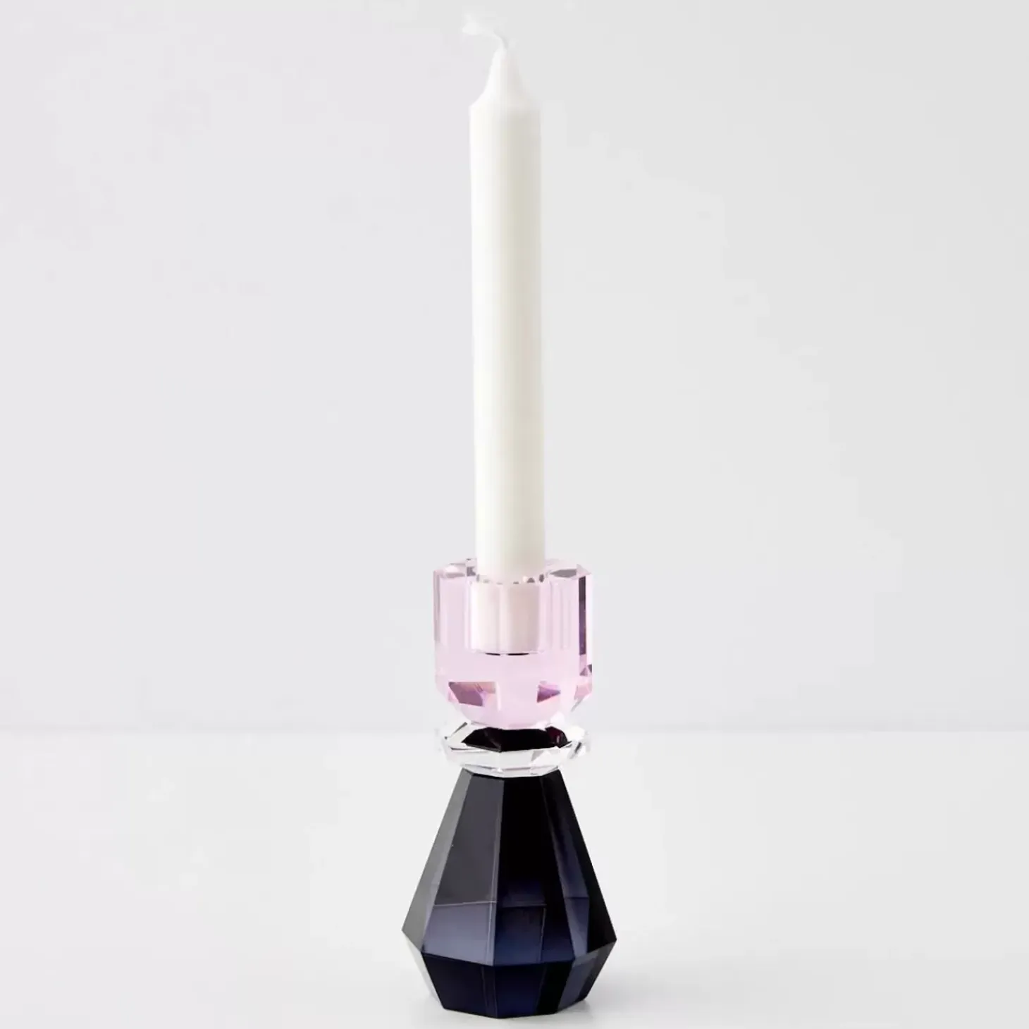 Exude Queen Energy To Your Interiors With This Strikingly Cut Crystal Taper Candle Holder In Bold Black And Innocent Pink. Play Nice Or You’Ll Soon Be This Queen’S Pawn.