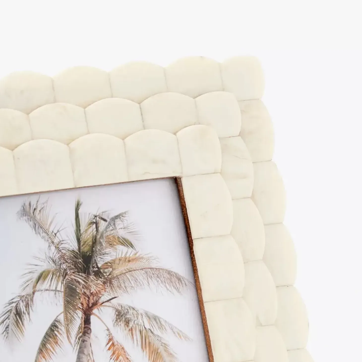 Keep Memories From Fading With This Stunningly Crafted Photo Frame In Delicate Ivory Bone Inlay In An Interlocking Scallop Design, Easily Styled With Neutral Or Colourful Interiors.