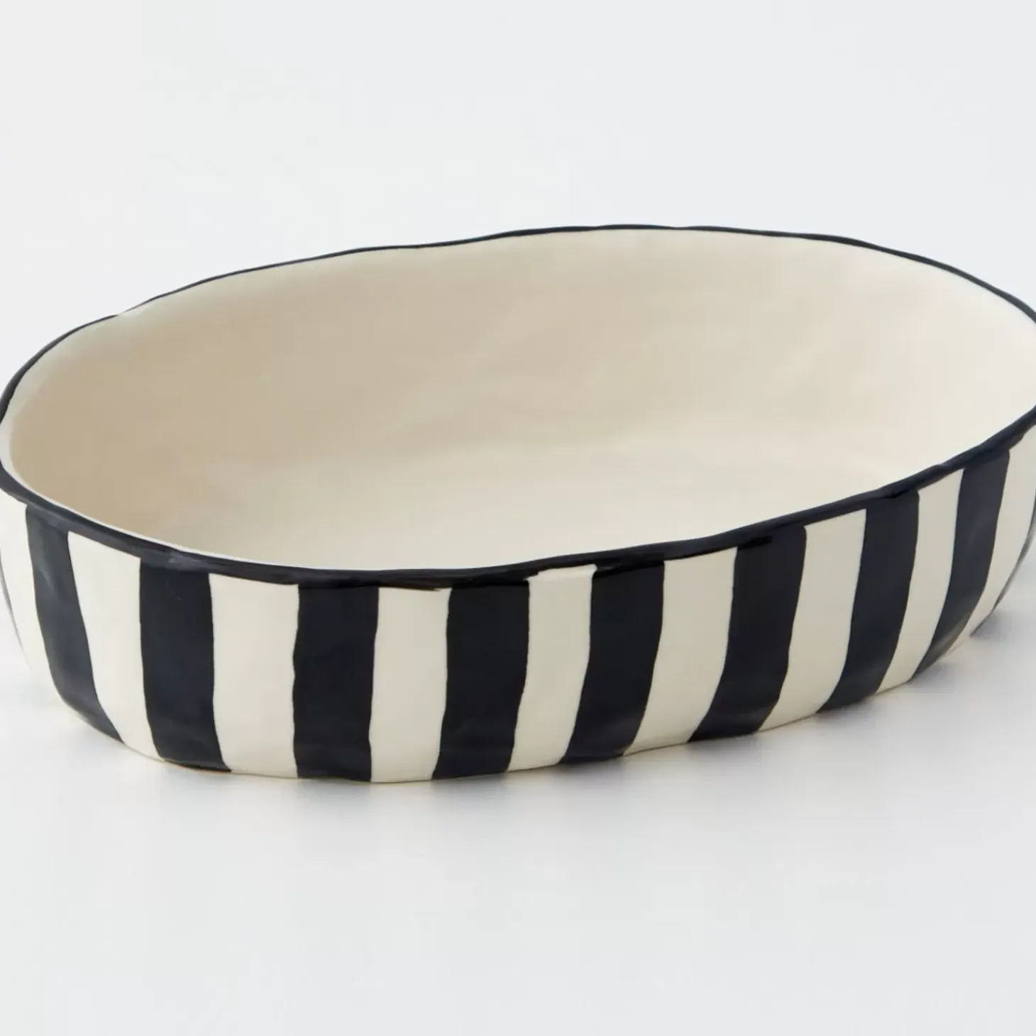 Add Coastal-Chic To Your Kitchenware With Our Striped Ceramic Serving Dish In Classic White And Black Stripes. In An Eye-Catching Glazed Finish, This Dish Is Great For Dinner Parties.