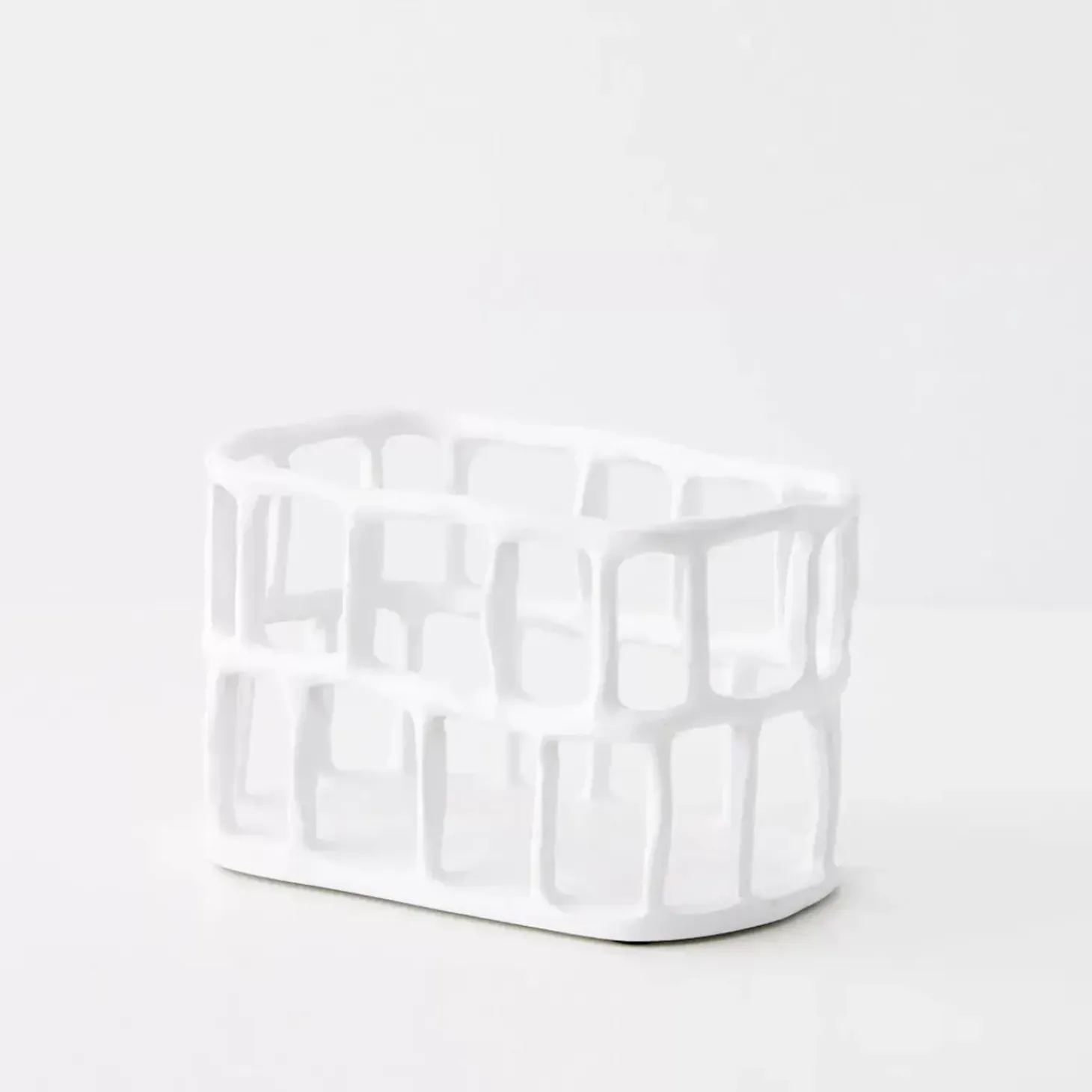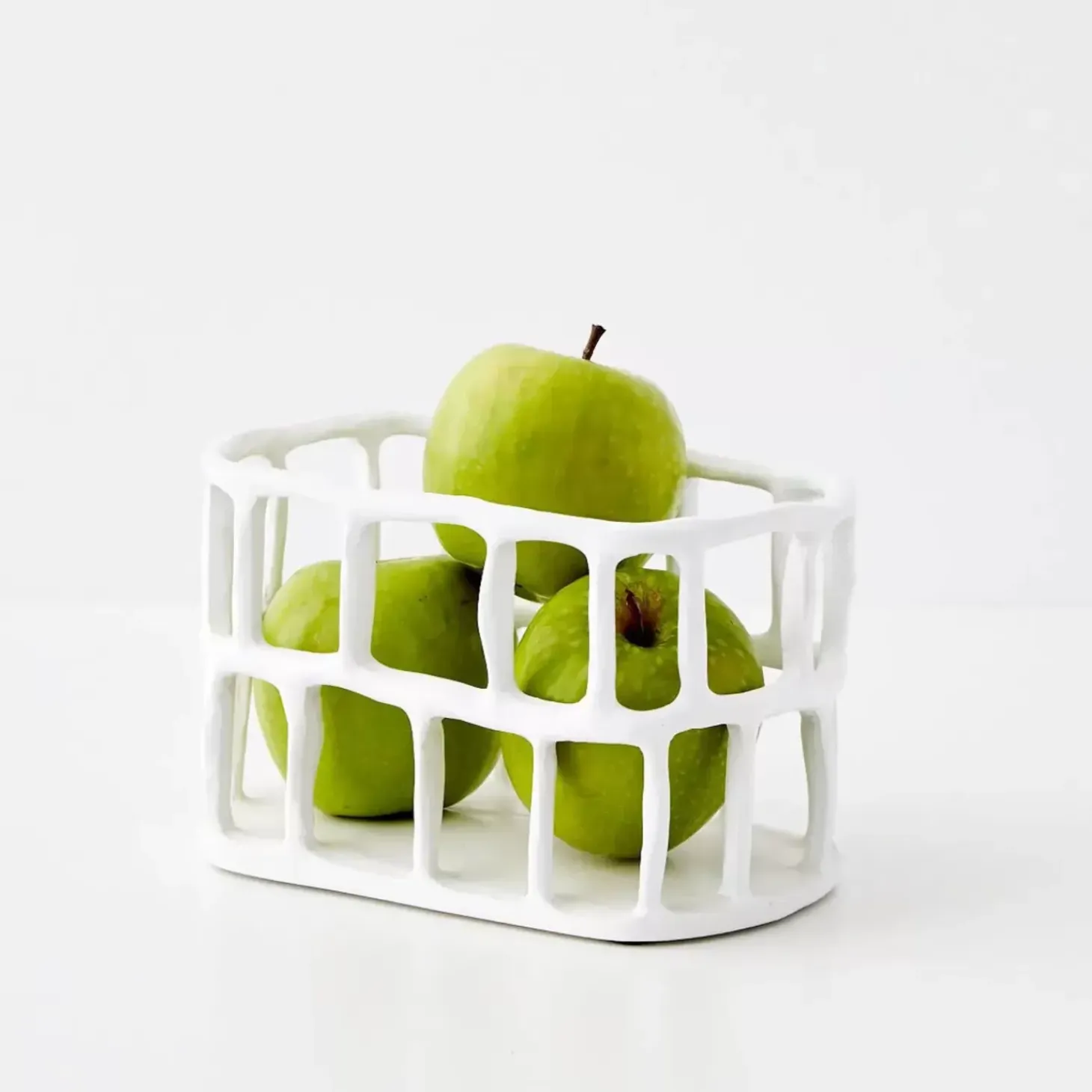 Rock The Resin Trend With This Woven-Shaped Basket In Calming, Cool White. Stack With Bright Citrus Or Use As A Tasty Bread Basket, This Piece Merges Rustic Charm With Modern Materials.