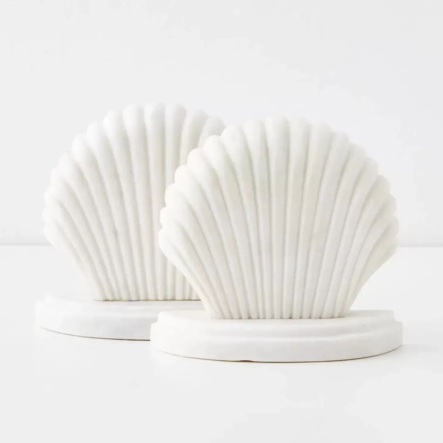 Keep Your Favourite Novels, Magazines, Journals And Beach Reads Clamped Neat, Tidy And Upright With This Set Of Chic White Marble Shell-Shaped Bookends.