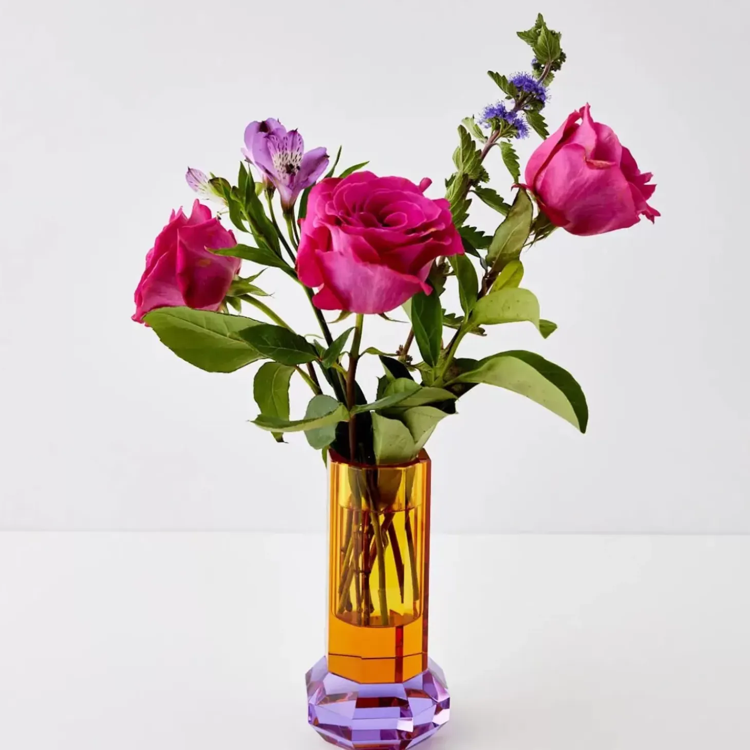 Dazzling Diaphanous Shades Of Amber And Violet Crystal Have Been Expertly Layered In This Cushion-Cut Column Shaped Vase That Will Add Colour, Spark And Brilliance To Your Bouquets.