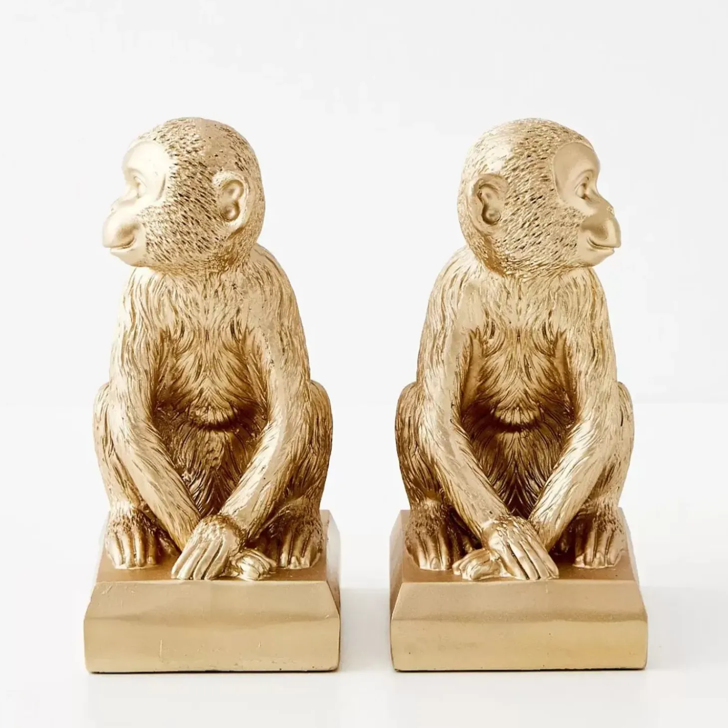 Keep Your Books, Journals And Magazines From Monkeying Around With Kitsch, Gold Resin Bookends That Add Personality And Organisation To Your Home Office, Library Or Book Shelf.