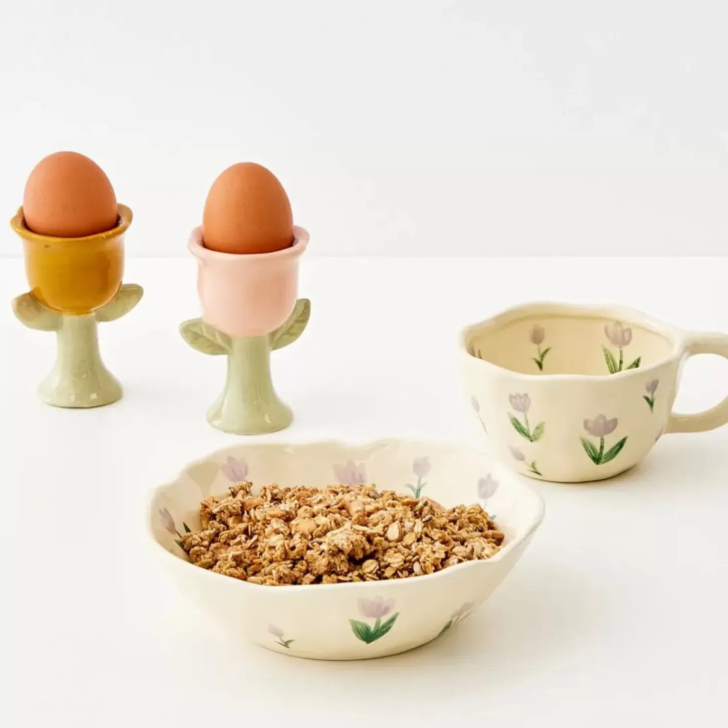 Straight Out Of Grandma’S Cupboard, This Vintage-Inspired Buttercup Yellow Glazed Ceramic Bowl Makes The Sweetest Trinket Dish Or Snack Bowl With Its Lilac Tulip Hand-Painted Design.